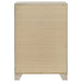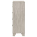 This four-drawer chest offers a stylish combination of rustic charm and modern design, making it a perfect storage solution for contemporary bedrooms. Finished in a rustic cream with rough-sawn, white-washed engineered paper veneer, it has a warm, textured appeal that’s both inviting and chic. The extra-wide polished nickel handles add a sleek, modern touch, creating a subtle contrast. Built with engineered wood, the chest features English dovetail joinery and Center metal glides for durability and smooth functionality, ensuring it meets both aesthetic and practical needs.